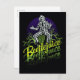 Beetlejuice sitting on a tombstone, featuring his name written three times.