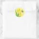 Round sticker shown with a cute beezy the bee on daffodil flowers print. Customise this item or buy as is.