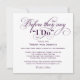 A sophisticated square welcome party invitation featuring dramatic "Before they say I Do" calligraphy in deep plum on a white background. The design is perfect for pre-wedding weekend gatherings and includes space for host names, venue details, and dress code. All text is fully editable for your celebration.