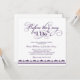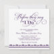 This bold and elegant square-format rehearsal dinner invitation features the phrase "Before They Say I Do" in rich purple calligraphy with sweeping scrollwork flourishes. A purple damask border strip at the bottom adds a regal finishing touch. All names, dates, and event details are fully editable. A striking choice for a purple, plum, or formal wedding rehearsal dinner.