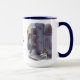 A mug with a funny cartoon about a begging cat, refusing to work for food. Original artwork by DB Cartoons.