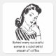 A vintage housewife with "Behind every successful woman is a substantial amount of coffee"