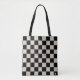 Personalised beige and black chequered tote bag. Add your name or other test at the personalised prompt. Be sure to fill in or blank out both text boxes. Designed for you by HAMbyWhiteGlove. Note: Grey colour can be changed, just personalise.