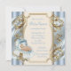Beautiful gold, ivory and baby blue vintage baby boy shower invitation. This adorable beige and blue vintage baby shower invitation is easily customised for your event by adding your event details, font style, font size & colour, and wording.