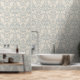 Beige and Blue Woodland Block Print Damask Wallpaper
