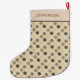 Elegant beige and brown polka dots on beige background Christmas stocking. Name is ready to be personalised.