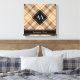 Beige and brown tartan design. Seamless pattern. Custom text and monogram.