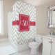 Add a sophisticated touch to your bathroom with this beige and red chevron stripes shower curtain. Featuring a bold geometric pattern and a customisable square monogram, this design blends elegance with a personalised touch. Made from high-quality fabric, it ensures durability and easy maintenance, perfect for modern and stylish bathroom settings.