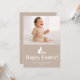 Beige And White Bunny With Custom Photo Easter Card