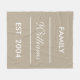Stylish, fun and personal family name design with customisable text areas for the name of the family and year the family was established (wedding / child's birth / other important anniversary). The beige background colour can be changed to any other colour.