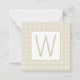 Beige and White Gingham Plaid Monogram Card