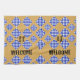 Diamond Shaped blue and white chequered design with beige background. Four places for text customisation. A simply beautiful personalised gift. Part of the Plethora of Patterns Collection.
