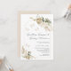 Modern butterfly kisses and baby wishes baby shower invitation featuring two bohemian style floral arrangements with pampas grass in various shades of beige and green. The design also features four butterflies and a fine line arch.