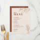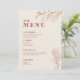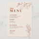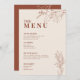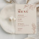 This menu is chraacterised by boho style, floral artwork, neutral earthy, and beige colours, with a mix of different font styles, often in different sizes, to create a unique, eclectic look that makes these menus a natural aesthetic.