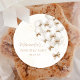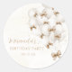 The sticker is made on wonderful paper and had no problem sticking to the bag that I purchased to put it on. I wanted to find a design that would be cute for the bride and groom and this one fit the bill as it has cute "bees" buzzing around and the wedding was taking place in a town called "Bee Cave". The packaging was great and protected the stickers. The website is easy to navigate and there are so many color choices. I had no problem finding a color that the bride was using on everything else selected. The design was adorable and there were many to choose from. You can make the figure as larger or smaller and you can place the photo and writting whereever you want to in the sticker. The printing is fabulous..better than expected.
