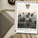 Beige Bow Aesthetic Coquette Photo Graduation Announcement with a bow pattern on the back.