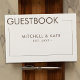Beige & brown border simple wedding guestbook. Personalise it with your event details.