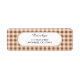 Add a cosy touch to your holiday cards with a beige brown buffalo plaid return address label, featuring elegant typography for a warm Christmas feel.