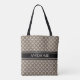 Chic beige and brown stylish diamond pattern with black belt Tote Bag. Text can be personalised.