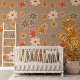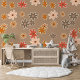 This design showcases a delightful, modern floral pattern in shades of warm orange, rust red, peach beige, and grey, set against an earthy brown backdrop. It's a sophisticated and stylish design that embodies a charming botanical spirit, perfect for artistic interior designers, decor enthusiasts, trendsetters, and those who appreciate a blend of vintage retro with elegant romantic themes. This decorative and chic feminine pattern is versatile and available on a variety of contemporary home decor items, making it ideal for enhancing the ambiance of spaces such as a master or children's bedroom, a vintage-inspired kitchen, or a nursery.