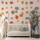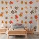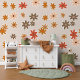 This design showcases a delightful, modern floral pattern in shades of warm orange, rust red, peach, and brown, set against an earthy beige backdrop. It's a sophisticated and stylish design that embodies a charming botanical spirit, perfect for artistic interior designers, decor enthusiasts, trendsetters, and those who appreciate a blend of vintage retro with elegant romantic themes. This decorative and chic feminine pattern is versatile and available on a variety of contemporary home decor items, making it ideal for enhancing the ambiance of spaces such as a master or children's bedroom, a vintage-inspired kitchen, or a nursery.