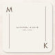 Beige Brown Simple Monogram Wedding Square Paper Coaster