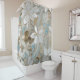 This neutral, yet colourful print features abstract flowers in the colours of beige, brown, teal blue and white. This contemporary design adds colour and detail to any home.