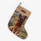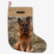 Beige faux burlap stocking, add a photo of your dog and the name. It's an image on burlap not real burlap fabric.