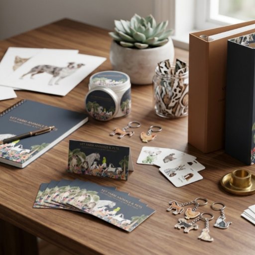 Beige Cow Sheep Dog Cat Bird Rabbit Duck Palm Business Card