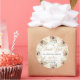 The sticker is made on wonderful paper and had no problem sticking to the bag that I purchased to put it on. I wanted to find a design that would be cute for the bride and groom and this one fit the bill as it has cute "bees" buzzing around and the wedding was taking place in a town called "Bee Cave". The packaging was great and protected the stickers. The website is easy to navigate and there are so many color choices. I had no problem finding a color that the bride was using on everything else selected. The design was adorable and there were many to choose from. You can make the figure as larger or smaller and you can place the photo and writting whereever you want to in the sticker. The printing is fabulous..better than expected.