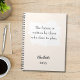 A beige, cream coloured background, with a white brush stroke. Inspiratiional, motivational Quote: The future is written by those who dare to plan. Personalise and add your name and a year. Grey text.