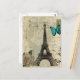 beige Damask butterfly rose Paris Eiffel Tower Postcard