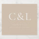 This beer bottle label features a clean and minimalist design in a beautiful beige hue, exuding elegance and simplicity. The focal point of the label is the personalised monogram, showcasing the initials of the newlyweds in a refined and timeless manner.