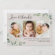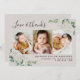 Beige Eucalyptus 3 Photo Baby Birth Stats Thank You Card