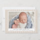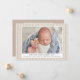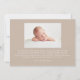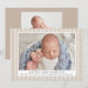 Celebrate the arrival of your little bundle of joy with our beige striped birth announcement photo cards. The farmhouse style birth announcements display your baby's photo on the front with a background of skinny beige linen stripes. Personalise the front of the announcements by adding the baby's name and birth information (birth date, length, weight, etc.). The simple birth announcement reverses to feature an additional photo with space for a message in white text with a dark beige background.