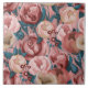 Ceramic tile with Abstract oil painting brown beige flowers with blue leaves floral background. Bright home decor ceramic tile.