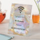 A Wi-Fi symbol. Add your wi-fi name and password for your customers/guests. This stunning sign feature a luxurious design with beige and gold agate patterns, sparkling accents, and a holographic touch,