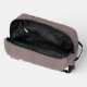 This toiletry bag design features a stunning combination of contemporary mauve taupe beige, dark brown, dark grey green coloured geometric circles, squares and half circles pattern on a crisp white background. The variety of whimsical shapes create a dynamic and rhythmic effect. The pattern is both ornate and elegant, with a touch of funkiness and hipster flair. There is also room to customise or personalise with a monogram or initial of your choice. Whether looking for a chic and modern style or a vintage and retro trend vibe, this pattern will suit your taste and personality.