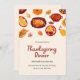 Gather your loved ones for a warm Thanksgiving dinner with this charming illustrated invitation. The design features a delightful array of Thanksgiving foods and autumn elements in vibrant shades of orange, yellow, and red, set against a soft beige background. The playful yet elegant illustration style perfectly captures the festive spirit of the holiday, making this invitation a lovely choice for your Thanksgiving gathering. It’s sure to set the tone for a memorable evening of gratitude and good company.