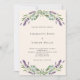 A beige coloured background decorated with purple lavender flowers and eucalyptus greenery. Personalise and your names and details.