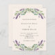 A beige coloured background decorated with purple lavender flowers and eucalyptus greenery. Personalise and your names and details.