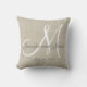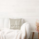 Beige Linen Grey White Monogram Wedding Keepsake Cushion