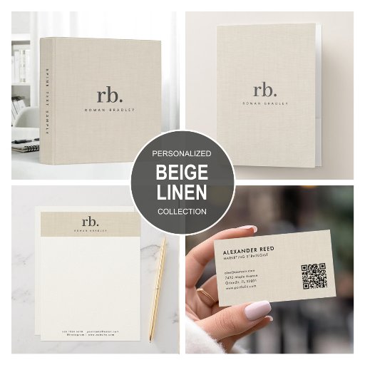 Beige Linen Iron Texture Simple Elegant Monogram