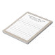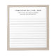 A professional lined notepad with a simple modern design. Custom name and title position role and company or custom text presented on a simple white background framed by neutral beige linen texture. Personalise using the fields provided or use the 'message' button to contact the designer for help.
