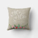 Beige Linen Rustic Floral Mr. Mrs. Wedding Cushion