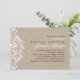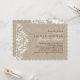 Beige linen burlap texture with white elegant vintage floral lace, bridal shower invitation template. White and brown suggested text