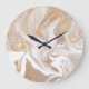 Beige liquid marble, gold line art. large clock
