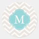 Beige & Mint Zigzags Pattern Monogram Classic Round Sticker