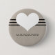 Sweet and charming Modern Heart Button featuring a beige background and a cute heart and striped border. This cute and girly button will add style to anywhere you pin it. Customise with the text of your choosing. Click on "Customise" to find additional personalisation options.