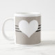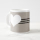 Sweet and charming Modern Heart Speciality Mug featuring a beige background and a cute heart and striped border. This cute and girly mug is perfect for enjoying your favourite hot beverage! Customise with the text of your choosing. Click on "Customise" to find additional personalisation options.